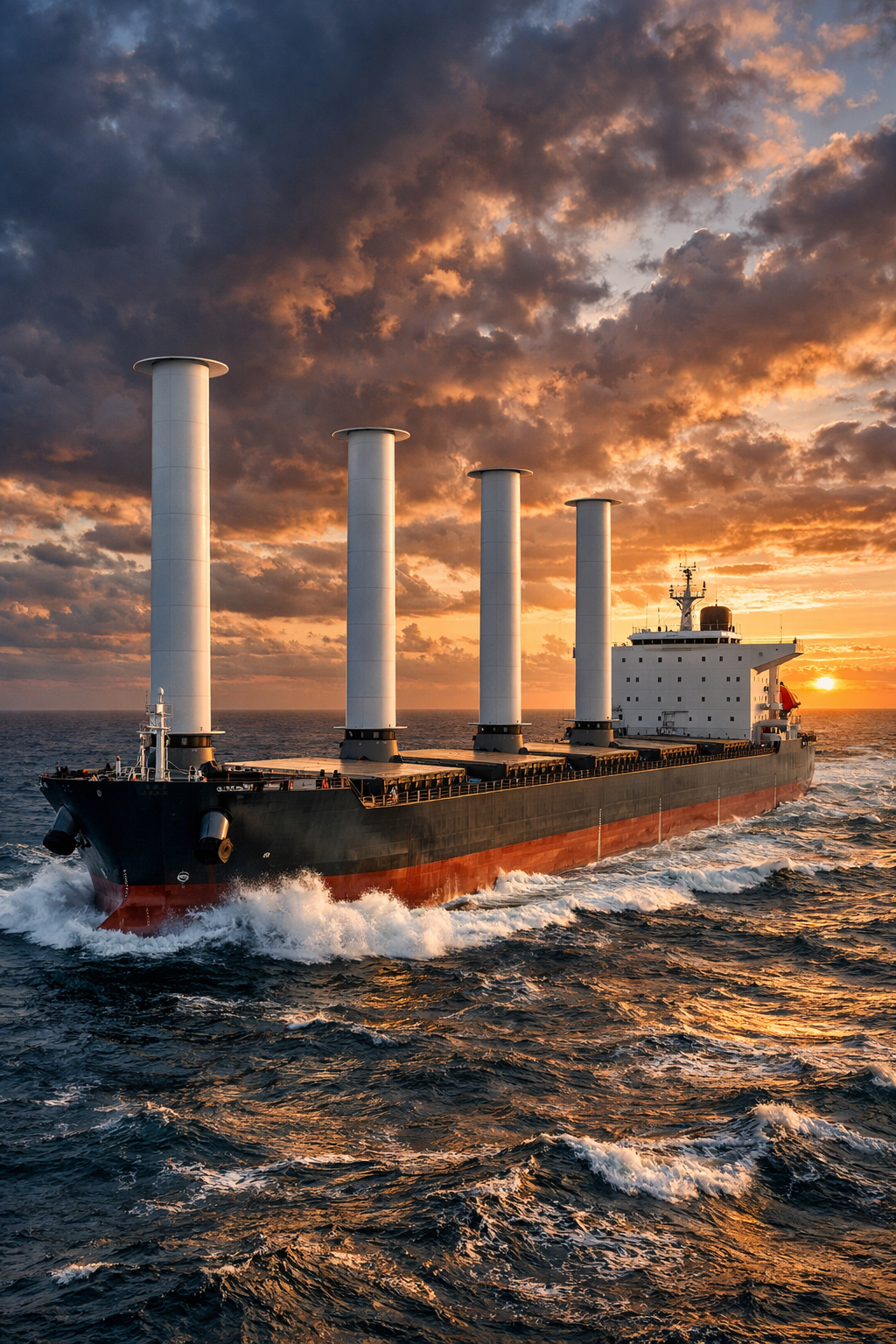 Rotor sails on a modern bulk carrier, created using AI according to the author's specifications